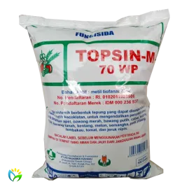 Topsin M-70 WP adalah fungisida sistemik berbentuk tepung, berwarna putih kecoklatan dan dapat disuspensikan untuk penggunaannya, mudah diserap dan diedarkan keseluruh jaringan dalam tanaman, untuk mengendalikan penyakit jamur pada tanaman Cabai, Tomat, Anggur, Tembakau, Bawang Merah, Bawang Putih, Kentang, Sawi, Buncis, Wortel, Oncang, Timun, dll.